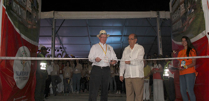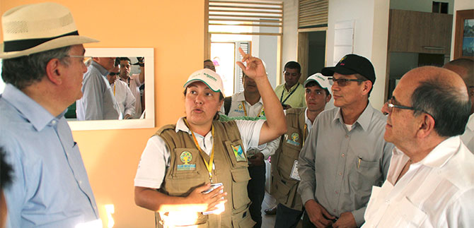 El alcalde de Cali, Rodrigo Guerrero Velasco, y el ministro de Hacienda y Crédito Público, Mauricio Cárdenas Santamaría recorrieron  la villa solar que alberga 15 prototipos de vivienda en marco del Solar Decatlon que se lleva a cabo en esta capital.