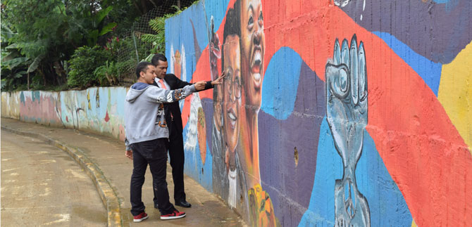 “Qué bueno que llegó este mural a la comuna 18, pues desde que se levantó el muro que sirve de contención al terreno donde está la institución educativa se quería que tuviera un uso mejor y distintos que el de depositar basuras y desechos, lo que afeaba esta vía en la ladera sur de Cali.
