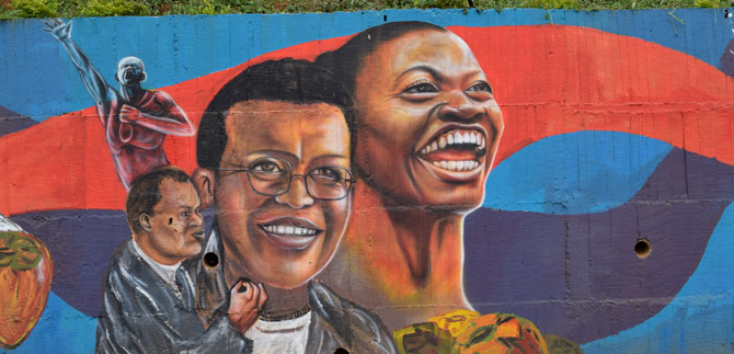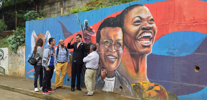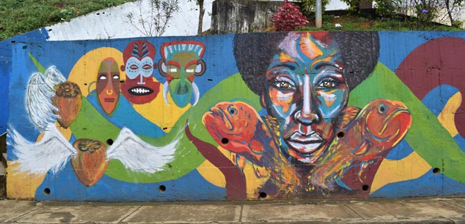 Como si se tratara de un colorido cuadro incrustado en un muro, el mural “Diáspora Africana” empieza a enlucir el empinado sector de Polvorines en el balcón sur de Cali, en la comuna 18.