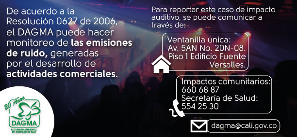 Para reportar impacto auditivo generado por establecimientos comerciales, el DAGMA es la entidad encargada que puede  imponer medidas desde decomiso de equipos, hasta el cierre definitivo de dicho establecimiento.