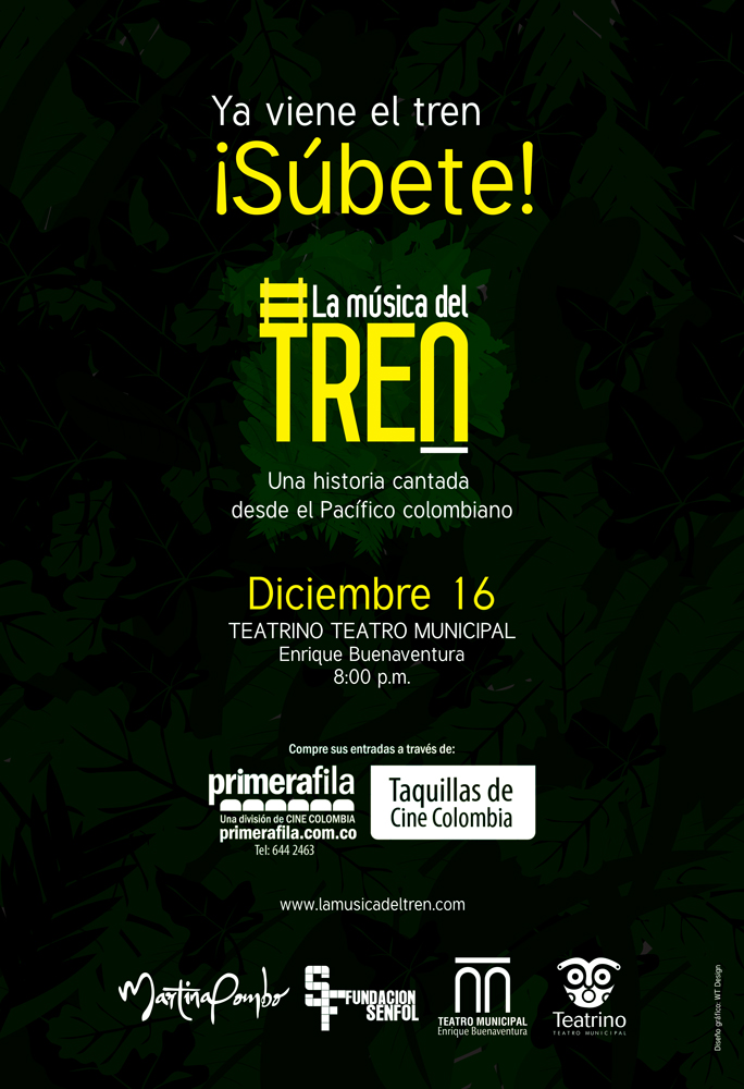 Ser parte de un público feliz, de vivir las músicas del Pacífico que son patrimonio inmaterial de la humanidad, felices de vivir un viaje musical por nuestra región, antecedentes que invitan al cierre de la temporada 2015 en  Diciembre del espectáculo “La música del tren”, combinación de música, danza y teatro en torno al ferrocarril que recorría el suroccidente de Colombia. Una obra para toda la familia, ganadora de becas dentro del programa de Estímulos de la Secretaría de Cultura y Turismo de Santiago de Cali (2015) y el  Ministerio de Cultura (2014).