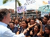 Durante su visita a Cali para entregar equipos de seguridad y el documento Conpes para el MÍO, el presidente de Colombia, Juan Manuel Santos, se dirigió a unos 200 estudiantes de Medicina de la Universidad San Martín, sede Cali, que en un plantón protestaban por la cancelación de su programa. Ver más