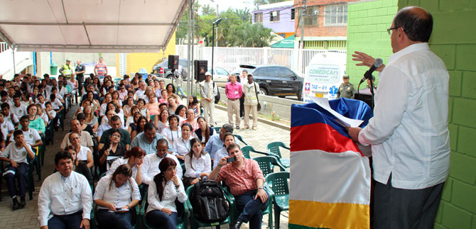 Por su parte, Natalia Jaramillo, directora de Cooperación de Mineducación expresó que para el gobierno del presidente Juan Manuel Santos es muy complaciente hacer parte de una alianza tan eficaz como la que permitió la construcción de esta institución educativa, puesto que estamos convencidos que para mejorar la calidad de la educación en el país debe existir acuerdos y aportes mancomunados.