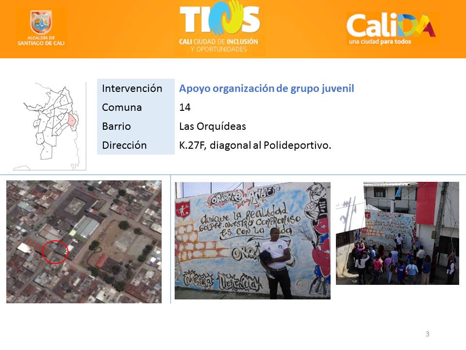 Barrios como Las Orquídeas, Alfonso Bonilla Aragón y Alirio Mora Beltrán,  ubicados como Territorios de Inclusión y Oportunidades – TIOS- de la comuna 14 recibirán, además de las inversiones propias de cada dependencia municipal, ejecución en proyectos por valor de $1700 millones.