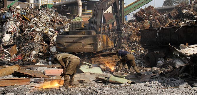 En ese lugar se encuentran unas máquinas gigantes conocidas como pulpos, las cuales se encargan de amontonar la chatarra en diferentes partes para posteriormente ser introducidas a una máquina fragmentadora que reduce el metal a su mínima parte.
