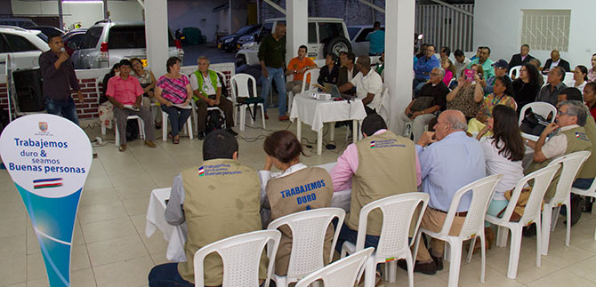 John Jairo Salgado Tamayo, Presidente Junta Acción Comunal del Barrio Calima comentó al mandatario local la necesidad de construir un muro de contención entre las calles 67 y 69, en la margen derecha del río, para evitar que este orade la bancada y tumbe parte de la zona verde, que utilizan en actividades recreativas los adultos mayores.