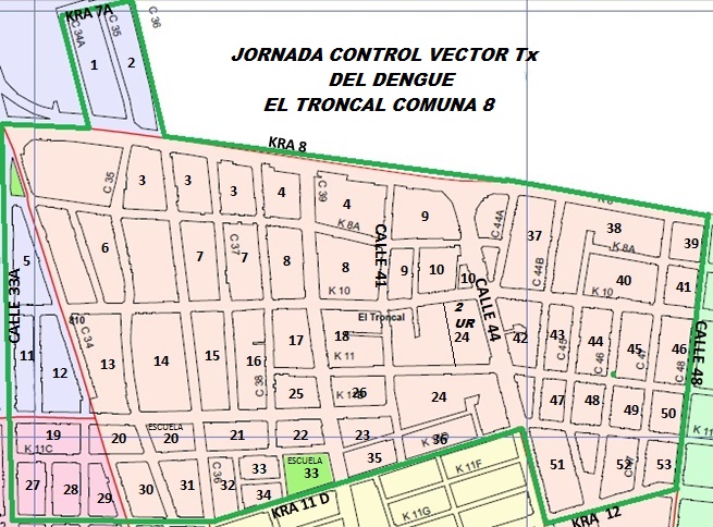 Funcionarios de la Secretaría de Salud Municipal intervendrán desde las 8:00 a.m. el barrio El Troncal de la comuna 8 con una jornada de identificación de focos del vector del dengue en las viviendas del sector.