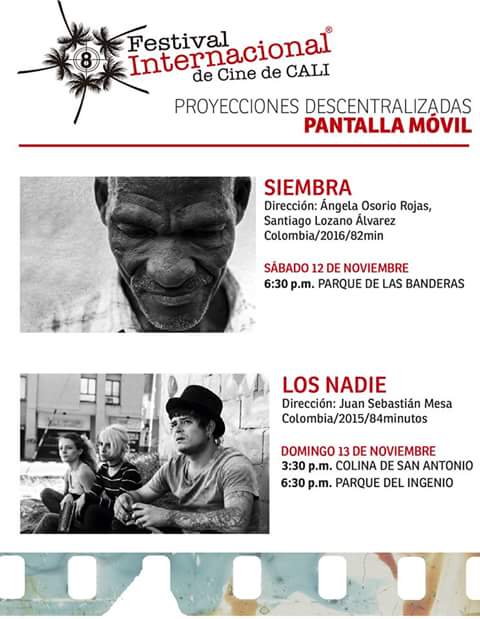 En la noche del sábado, unas cincuenta personas se encontraron en el Parque de Las Banderas, para ver la película ‘Siembra’, de los directores caleños Ángela Osorio Rojas y Santiago Lozano Álvarez, gracias a la tecnología que permite en un vehículo transportar una enorme pantalla, para llevar el festival a otros escenarios.