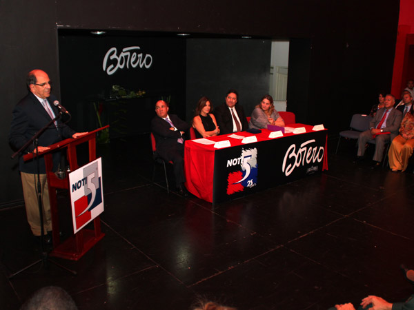 Al acto de celebración de los 25 años de Noti5 estuvieron también presentes la ministra de Cultura, Mariana Garcés, el gobernador del Valle, Ubéimar Delgado, el presidente de Noti5, Alfonso Córdoba; su director, Édgar Arias, y el hijo del maestro, Fernando Botero.