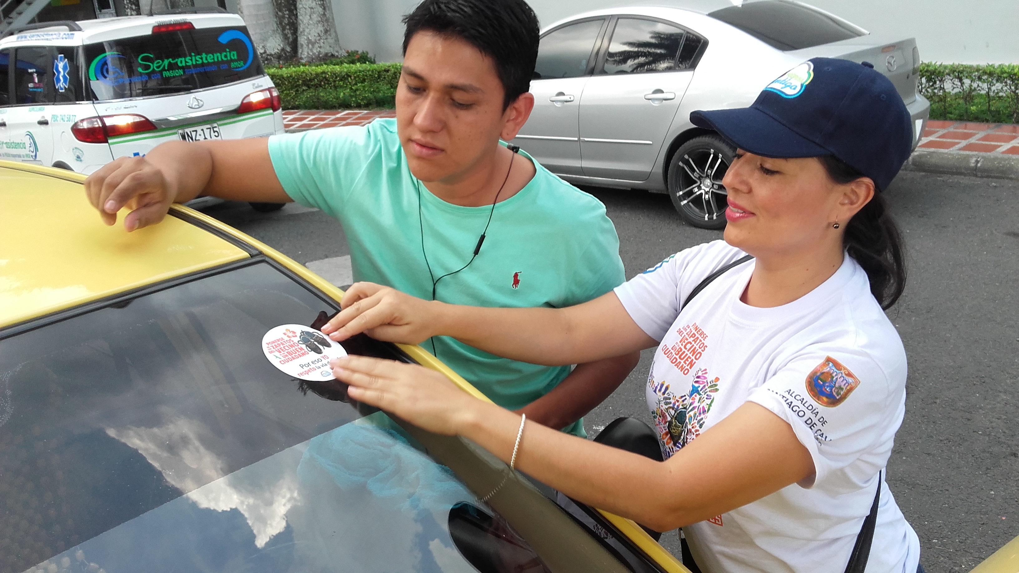 En la calle 5ª con carrera 30 y en la pista de taxis de Imbanaco, se realizó un pacto por la cultura ciudadana en la movilidad, donde se pegaron calcomanías de “Ponerse en los zapatos del vecino, es ser un buen ciudadano”, en espacial en las vías, donde los carros, motos y buses fueron impactados por los gestores y la Asesora de Cultura Ciudadana.