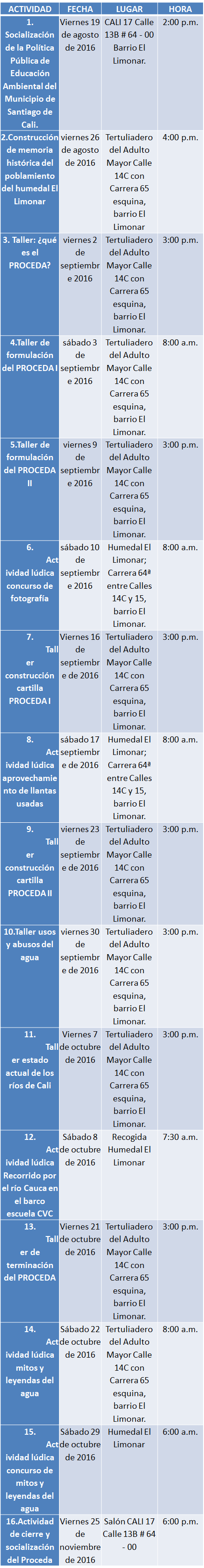 El Dagma en conjunto con el Colectivo Ciudadano del Humedal El Limonar inició el Proyecto Ciudadano de Educación Ambiental - Proceda, en el que a través de diferentes actividades y capacitaciones se promueve y sensibiliza a la comunidad sobre el uso eficiente del recurso hídrico de la ciudad.