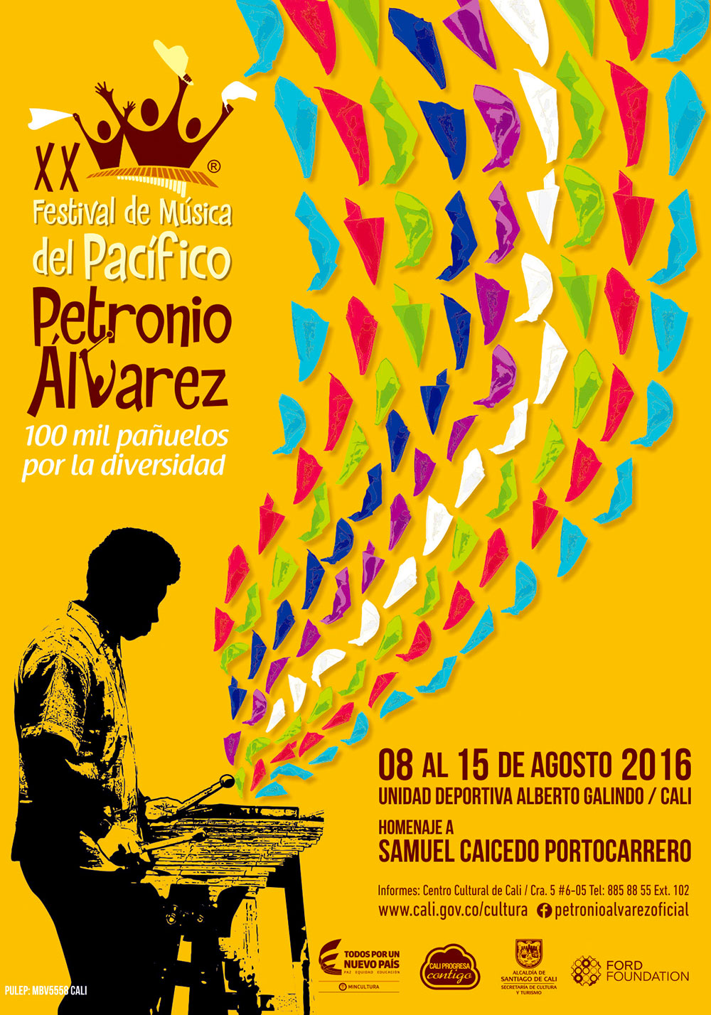 100 mil pañuelos por la Diversidad, el festival se constituye en un espacio de paz. El colorido de los pañuelos que surgen del sonido de la marimba, manifiesta la alegría y riqueza cultural de esta fiesta.  El marimbero que se representa, es un fiel exponte de las músicas tradicionales del Pacífico.