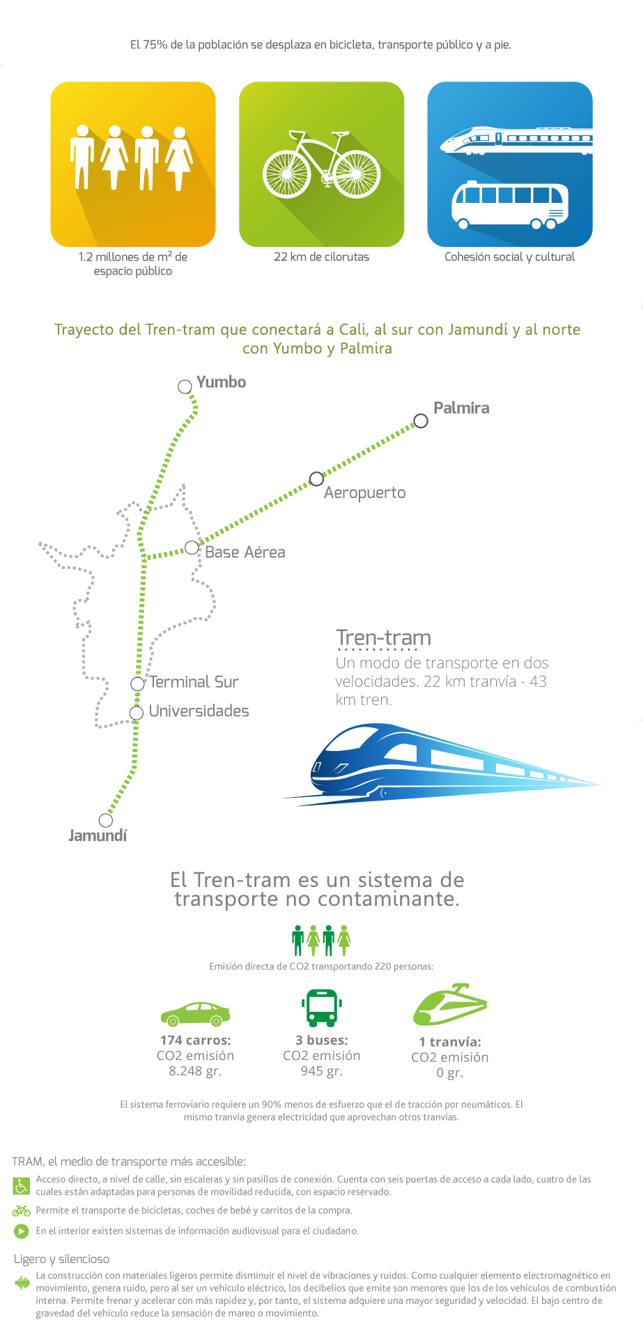 Es de suma importancia para nosotros plantearle a la ciudad soluciones de movilidad prácticas, eficientes y amigables con el medio ambiente, entendemos las necesidades de los caleños, es por ello que se construirán 22 km de ciclo rutas en el Corredor Verde, además de la implementación de un tren-tram que recorrerá la ciudad e interconectará a Yumbo, Palmira, Cali y Jamundí.