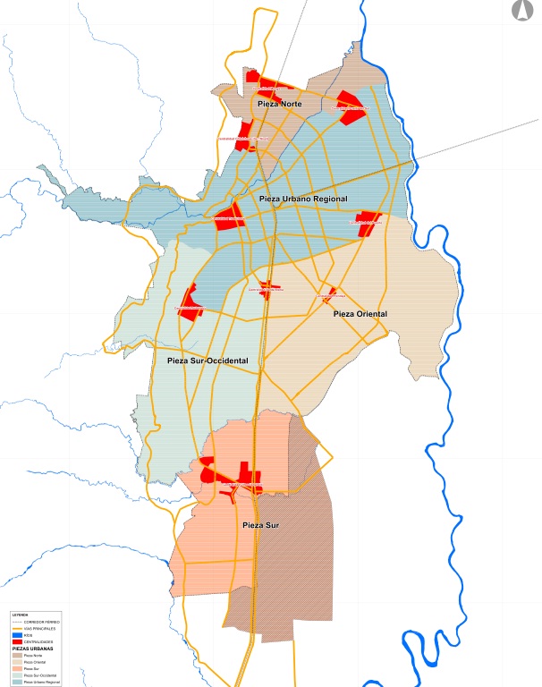 El POT del 2000 definió cinco piezas urbanas de planificación intermedia (ver fig. 1), cuyo papel era articular el modelo de ordenamiento territorial con las fichas normativas.