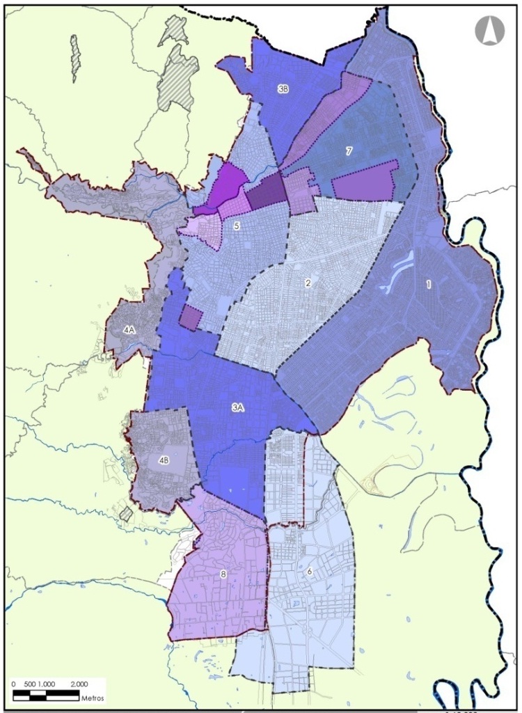 Los análisis realizados han comprendido diferentes variables como disponibilidad de espacio público y de equipamientos; densidades poblacionales; capacidad vial; estado de redes de los servicios públicos; precios del suelo; tamaño de los lotes; y alturas, entre otras. De acuerdo con los resultados de los mencionados análisis, se ha consolidado una delimitación preliminar de ocho UPU, que constituyen los instrumentos de planificación intermedia para el ordenamiento del suelo urbano de Cali (ver fig. 2).