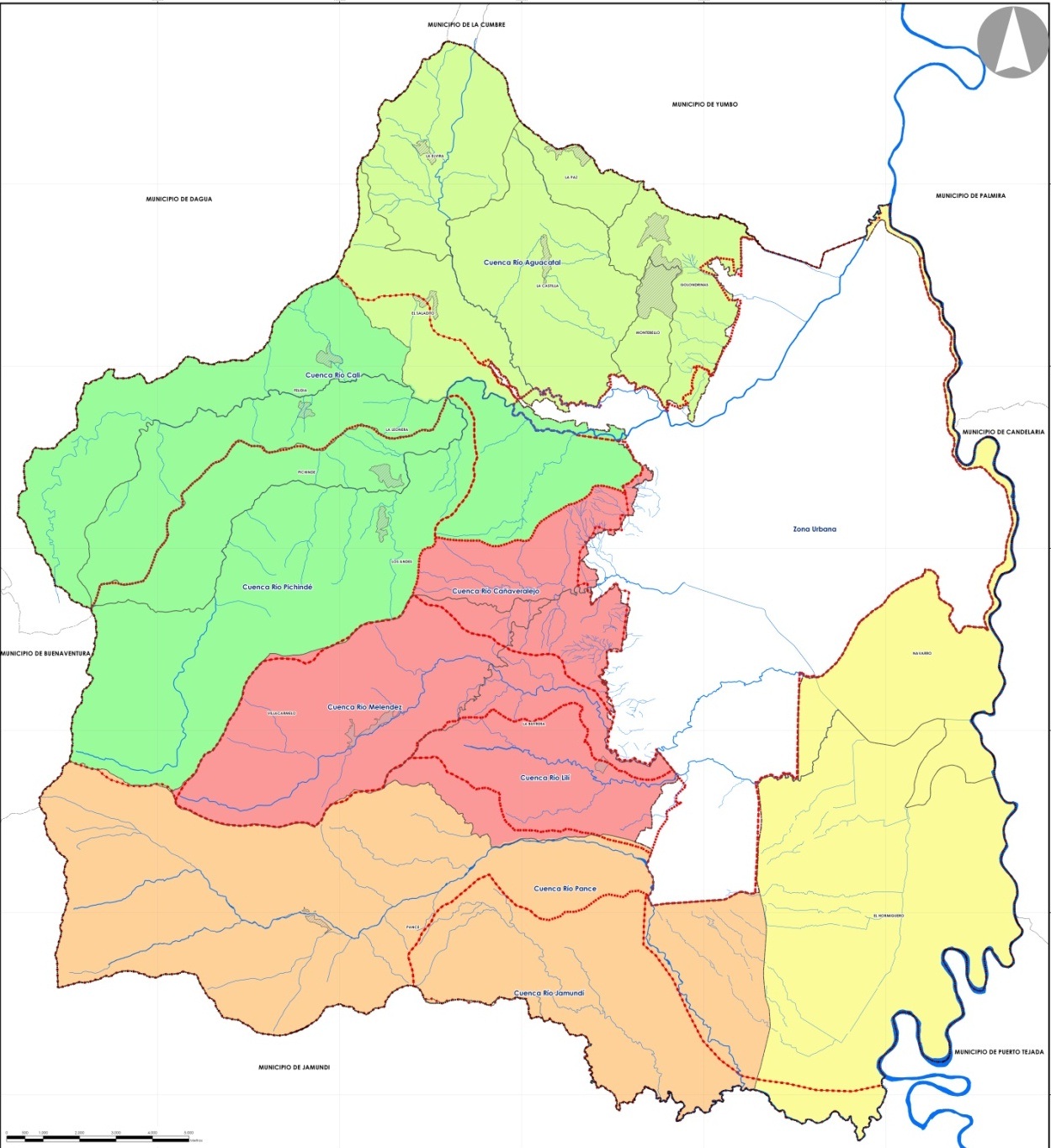 De estos criterios, para la delimitación de las UPR del nuevo POT de Cali se ha hecho especial énfasis en la división por cuencas hidrográficas, no sólo por su importancia en el ordenamiento ambiental del territorio, sino también por el reconocimiento por parte de la comunidad rural (Consejo Municipal de Desarrollo Rural (CMDR) de esta unidad territorial como aquella que los identifica; así como por la necesidad de articulación del ordenamiento municipal con instancias de superior jerarquía como los Planes de Ordenamiento y Manejo de Cuencas Hidrográficas –POMCH–. De la misma manera, como criterios adicionales para la delimitación de las UPR se tuvo en cuenta la situación actual de las diferentes zonas rurales; las dinámicas sociales y económicas presentes, y las intenciones de acuerdo con el modelo de ordenamiento.