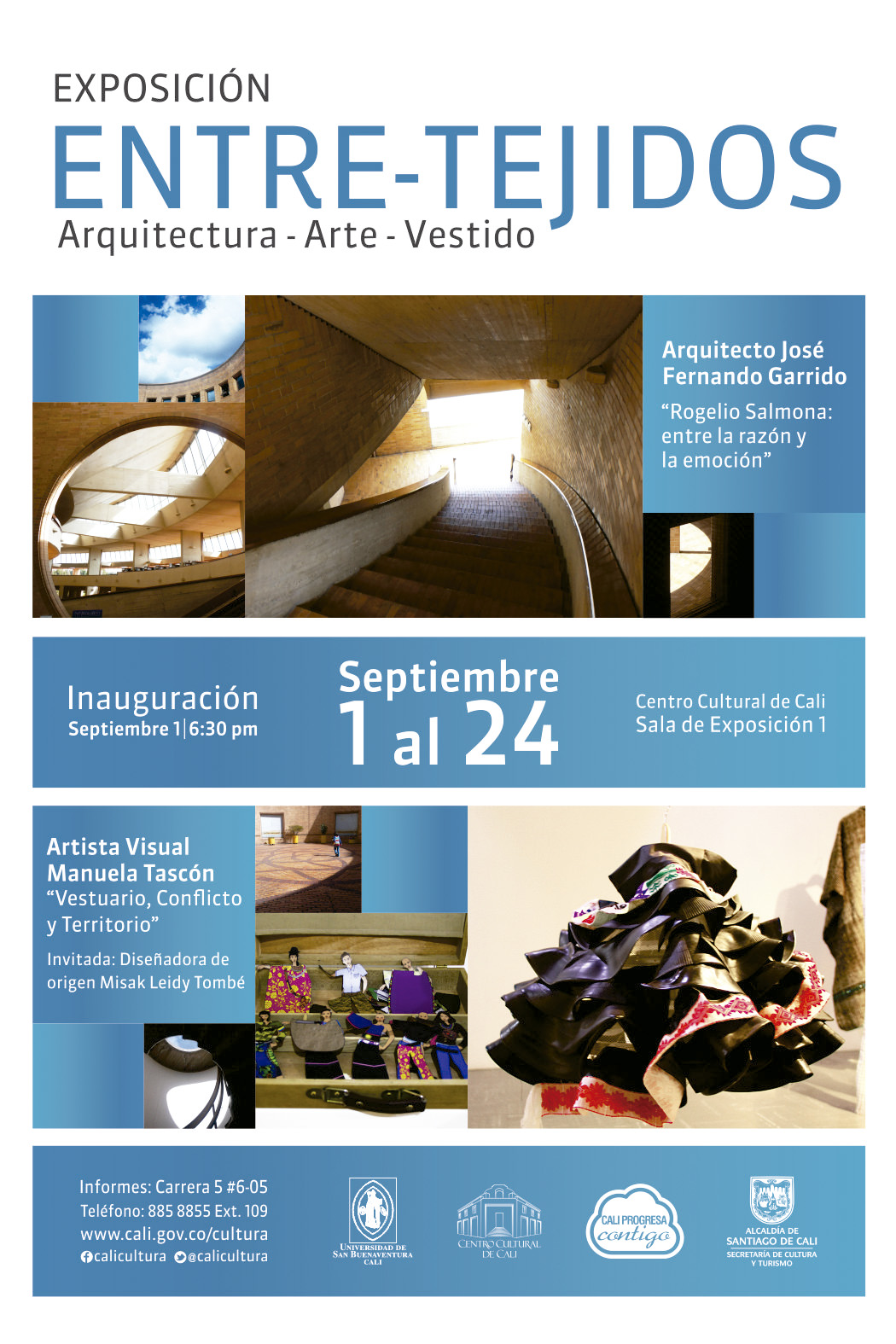La muestra, que se mueve entre los conceptos Arquitectura, Arte y Vestido, estará abierta del 1 al 24 de septiembre en las Salas de Exposición del Centro Cultural de Cali, de la carrera 5ª con calle 7ª, con entrada libre en los horarios de oficina.