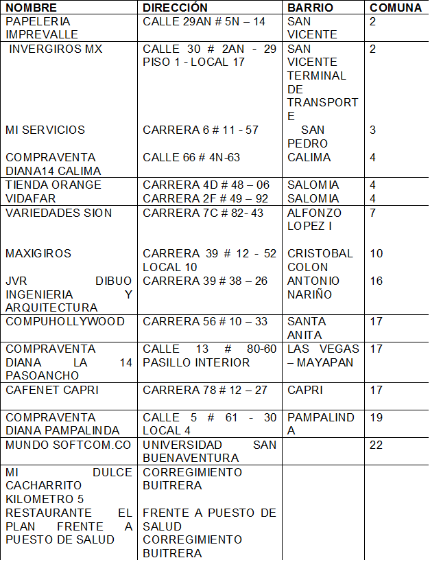 Para el director Comercial y Servicio al Cliente de Metro Cali, Andrés Pla, uno de los principales criterios para reemplazar los puntos, es que los nuevos se instalen cerca a los sitios que estaban activos con Gane, y que hoy se encuentran desactivados. “Actualmente cerca del 85% de los puntos que estaban fuera de servicio se encuentran operativos”, señaló el funcionario.