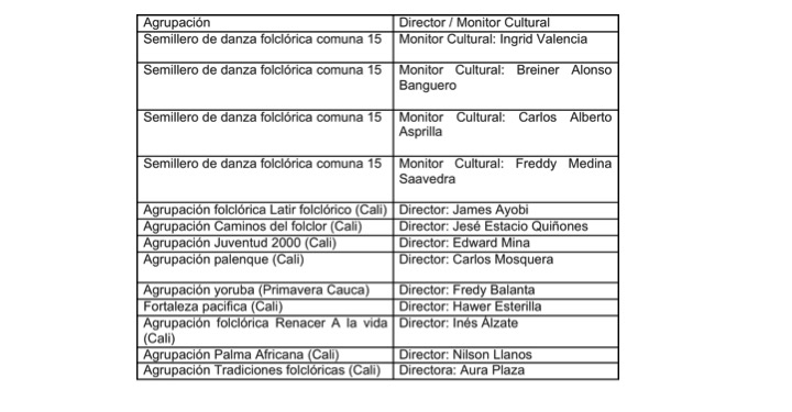 Este certamen, orientado por la maestra Aurelia Carvajal, presenta a las agrupaciones de danzas folclóricas de los barrios pertenecientes a esta comuna, constituida hace más de 20 años y los semilleros que viene realizando procesos de iniciación artística a través del Programa Arte y Cultura en los Territorios, de la Secretaría de Cultura y Turismo de Cali.